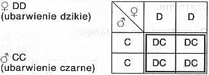 Wynik brzmi więc-genotypowo 100% “DC"; fenotypowo