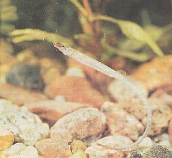 Narybek igliczni często pływał w toni wodnej przyjmując przy tym pozycję
