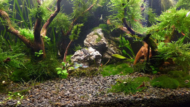 Podłoże: Ziemia ogrodowa + glina + zeolit + keramzyt. Na to przez pierwszy miesiąc był żwirek 3-7cm. Jednak postanowiłem go zmienić na czarny żwirek bazaltowy.