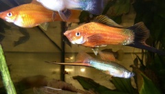 - ryba żyworodna, bardzo łatwa w rozmnażaniu, ciąża trwa 4-5 tygodni, rodzi się nawet do 70-250 młodych, samica może zjadać swoje młode - należy więc ją odłowić lub zapewnić gęstą roślinność, w której młode mogłyby się ukryć; młode karmić jak dorosłe, ale podawać bardziej rozdrobniony pokarm. Zapewnić dobre filtrowanie i napowietrzanie wody, chroniące młode przed infekcjami bakteryjnymi.