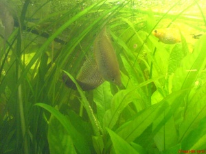 Jeśli chodzi o czystość w zbiorniku to najważniejsze jest zadbanie o resztki jedzenia, żeby się nie rozkładały. Ja akurat do tej roli „zatrudniłem” kiryski spiżowe. Nie zagrażały narybkowi gurami, ponieważ same były narybkiem wyklutym dwa tygodnie wcześniej. Uważam, że nawet wpuszczenie dorosłych kirysków nie zagrażałoby, ponieważ ikra i larwy są lżejsze od wody i unoszą się na tafli wody. Na tym kończę mój mini fotoreportaż o gurami mozaikowym. Bardzo polecam ten gatunek dla wszystkich akwarystów ze względu na jego ciekawe zachowanie podczas tarła i piękne ubarwienie, które doda uroku każdemu akwarium.